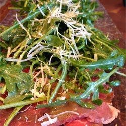 This carpaccio has it all: buttery beef tenderloin, fresh Parmigiano-Reggiano, arugula, and just the right mustard-lemon tang in the dressing. What could be more romantic than a meat-heart for your sweetheart?